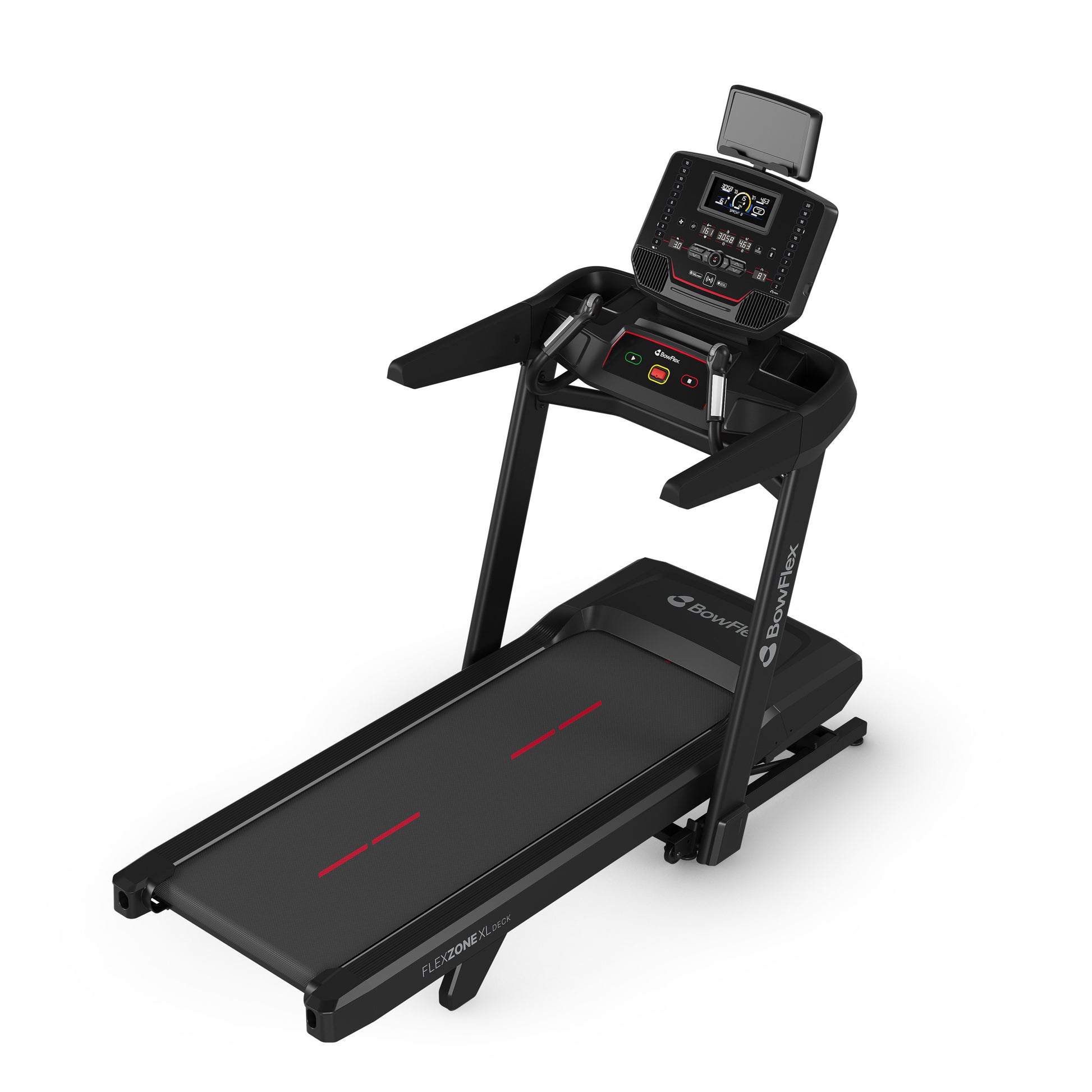 The BowFlex T9 Treadmill gives you the ultimate fitness app freedom for an indoor run with all the options. Connect your Apple Watch® to keep your metrics in sync. And choose your favorite fitness app: JRNY®, Kinomap®, Zwift® and more. The T9 Treadmill supports them all. With a wider 56 cm x 152 cm running area, Quick Response Technology for rapid speed and incline adjustments, and up to 15% motorized incline for hill training, this treadmill is ideal for high-intensity interval training (HIIT) and so much more.